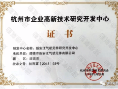 新安江气动元件研究开发中心获杭州市企业高新技术研发中心称号